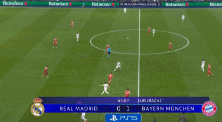 第27分钟此战创造皇马队史欧冠八强最年轻出场纪录的皮塔奇,回传失误送大礼,好在卢宁挡出了格纳布里的单刀射门,但狂攻不止的南大王,还是在第41分钟打破了场上的平衡,此前错失良机的格纳布里送出直塞,迪亚斯推射建功,成为了欧冠历史上第三位攻破皇马球门的哥伦比亚球员,帮助拜仁带着1-0的比分,回到了中场更衣室。